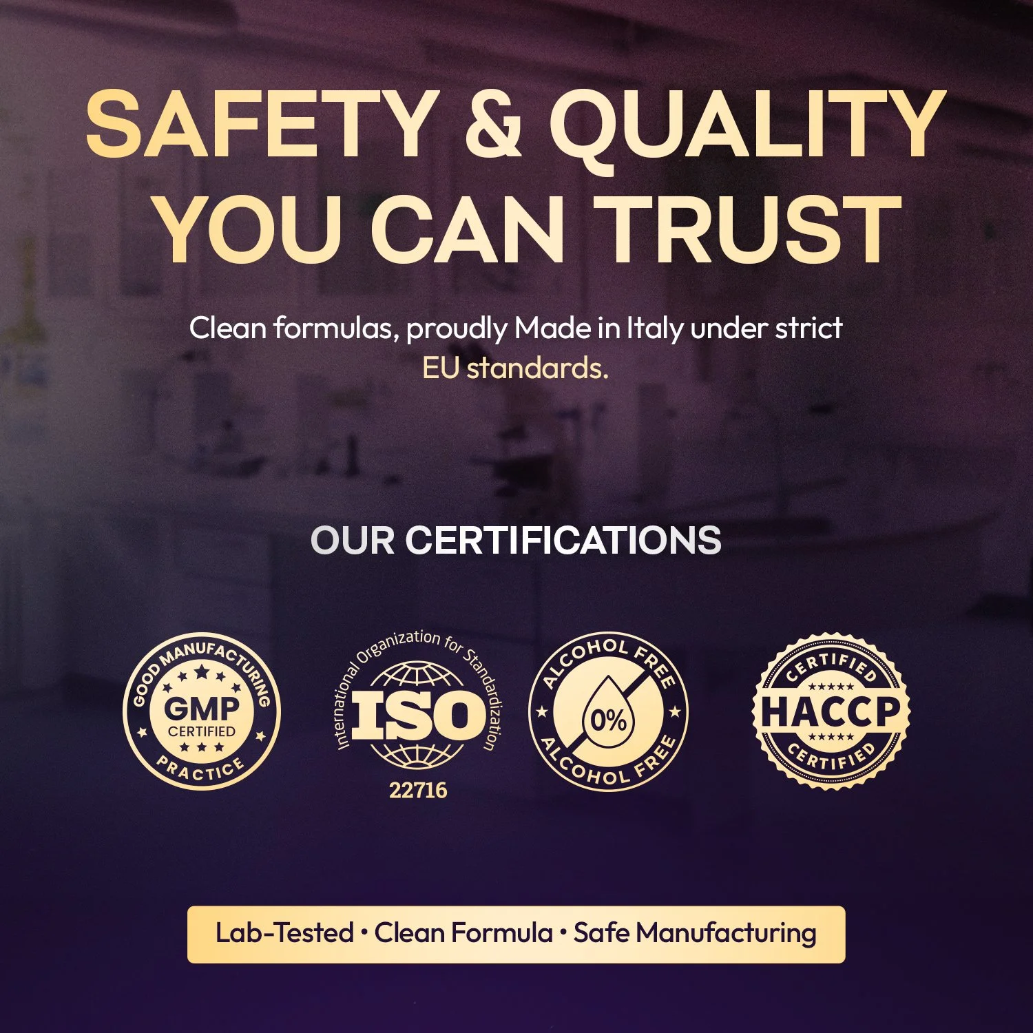 Our focus: high-quality ingredients, innovative formulations, and strict European standards.
