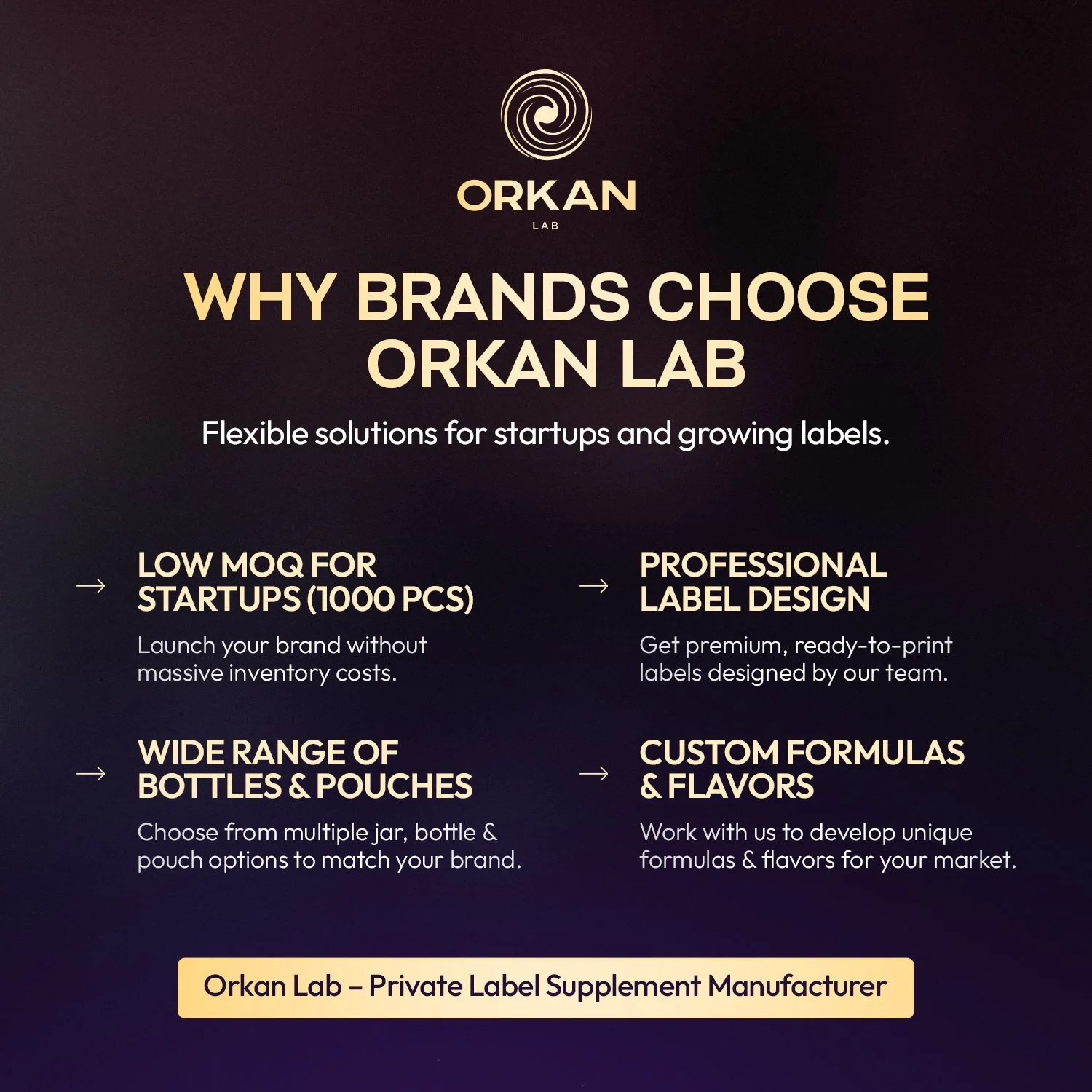 Orkan Lab is a certified supplement manufacturer based in Benevento, Italy, specializing in private label and OEM/ODM solutions for global brands.